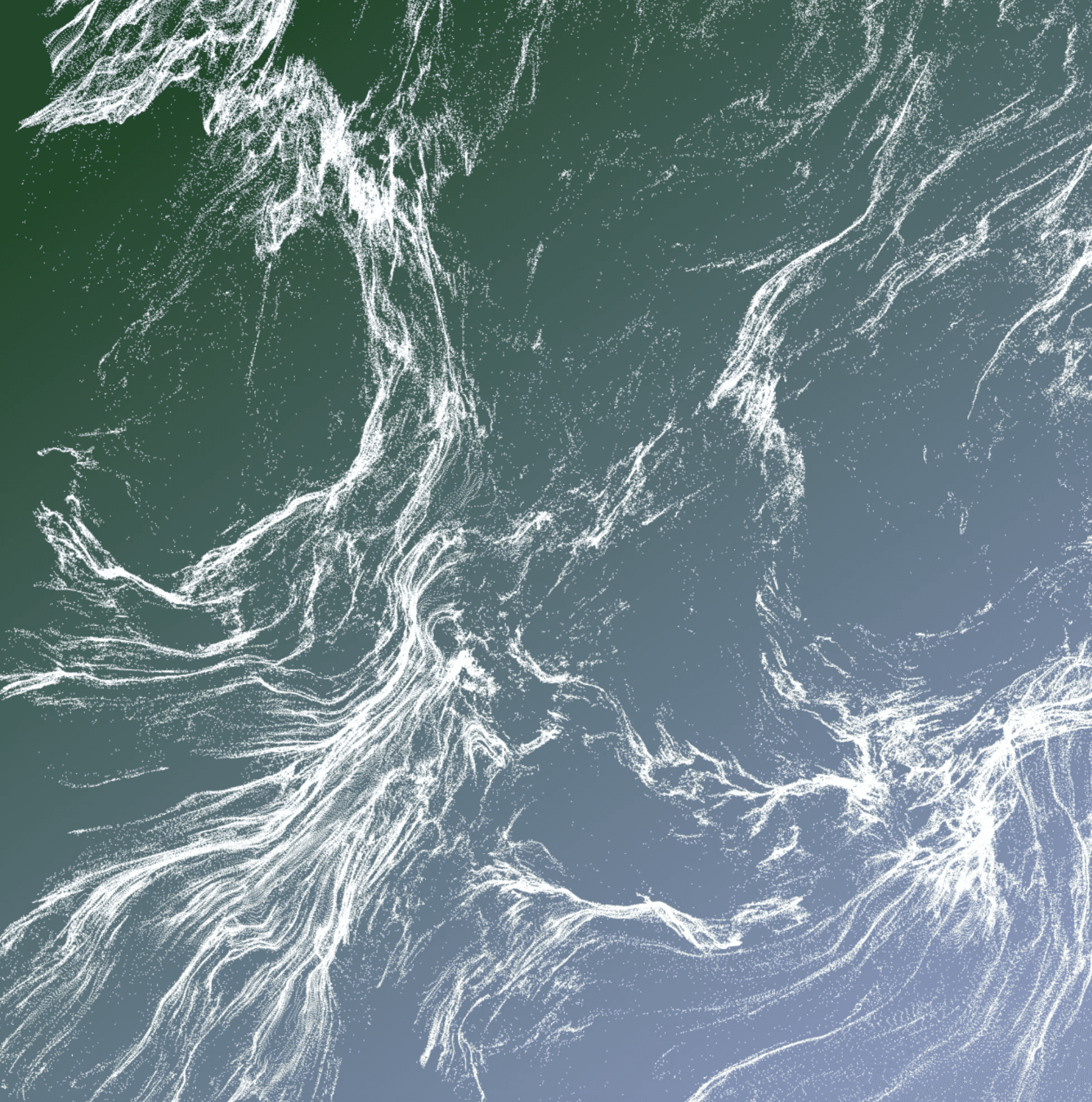 Flux is a living system of particles that drift together and apart, forming transient constellations that echo natural processes—fluid, gravitational, rhythmic. Each moment in the composition is both a dissolution and a coming-into-being, a constant negotiation between order and dispersal.